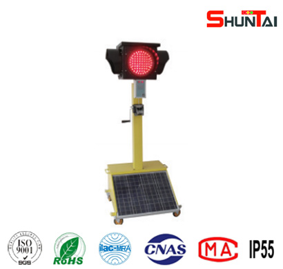 移動(dòng)式太陽能信號(hào)燈是一種可移動(dòng)、可升降的太陽能應(yīng)急道路交通信號(hào)燈,采用太陽能供電、市電輔助充電。